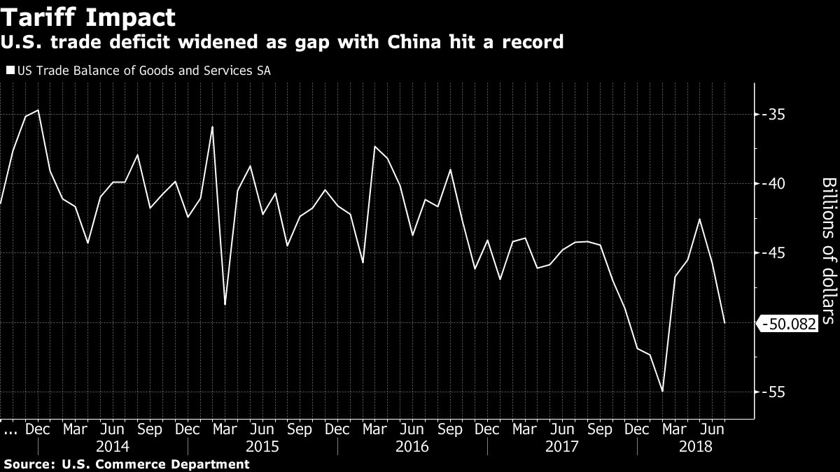 Ministarstvo trgovine je u srijedu priopćilo kako je deficit u trgovinskoj razmjeni roba i usluga porastao i u srpnju je iznosio 50,1 milijardu dolara, dok je u lipnju bio 45,7 milijardi dolara.