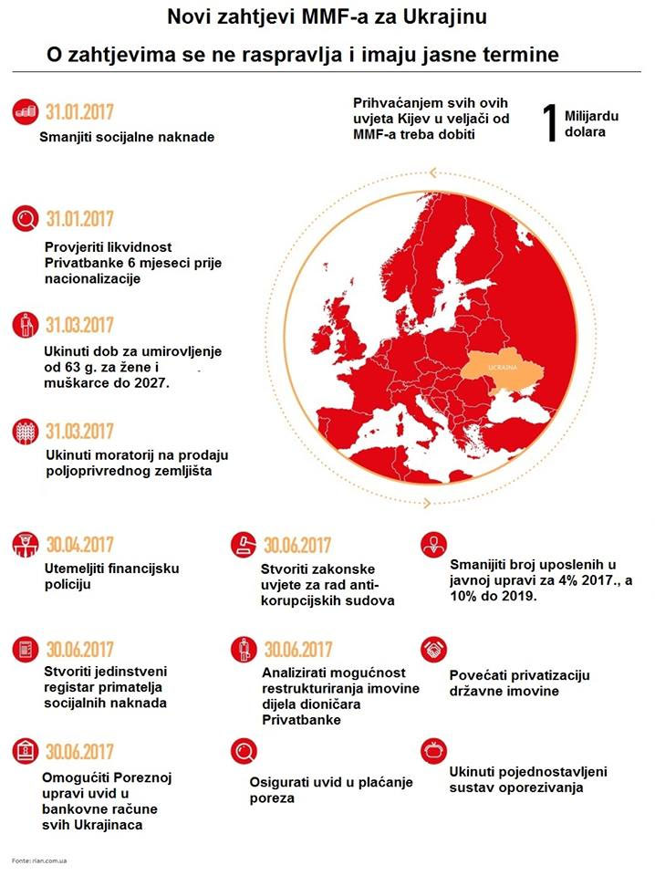 Međunarodni monetarni fond je bio jasan i Kijevu je za tranšu od milijardu dolara postavio sljedeće zahtjeve: