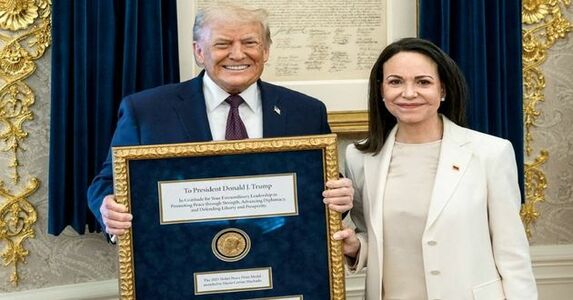 Neskriveno neskroman i slavohlepan Donald Trump – koji ne upravlja najmoćnijom državom na svijetu, SAD-om, kao mudar državnik, nego kao pohlepni poduzetnik velikom kompanijom – tvrdi da ga Nobelova nagrada za mir 2026. godine jednostavno ne može mimoići („Nema toga na svijetu tko ju je zavrijedio više od mene!“ – sic transit), pa je sada i foto-porukom podboltao odluku da zadrži darovanoga zlatno uokvirena Nobela za mir. „Znam da se predsjednik radovao sastanku i očekivao pozitivan razgovor s Machado, koja je doista izvanredan i hrabar glas za mnoge ljude Venezuele, ali on ostaje pri tvrdnji da ona nema potrebnu potporu za voditi Venezuelu“, komentirala je glasnogovornica Bijele kuće Karoline Leavitt.