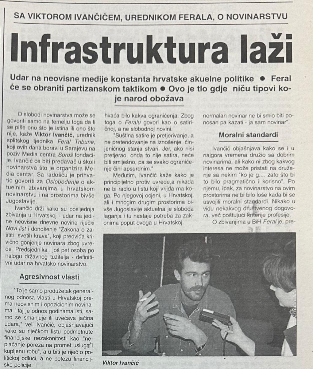 Viktor Ivančić bio je gost Sarajeva i prije 30 godina, kad je bio predavač u Školi novinarstva Mediacentra. Prisjetio se toga, čak i detalja da ga je i tada, i sada isti vozač dovezao u Sarajevo. Tom je prilikom, prije tri decenije, govorio za Oslobođenje.